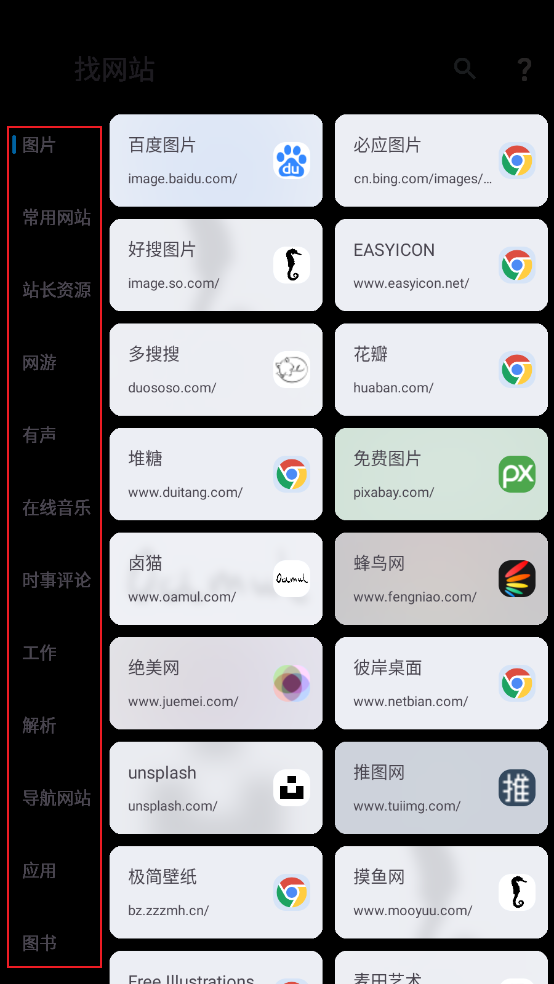 如图所示,在工具页面点击"找网站"。
