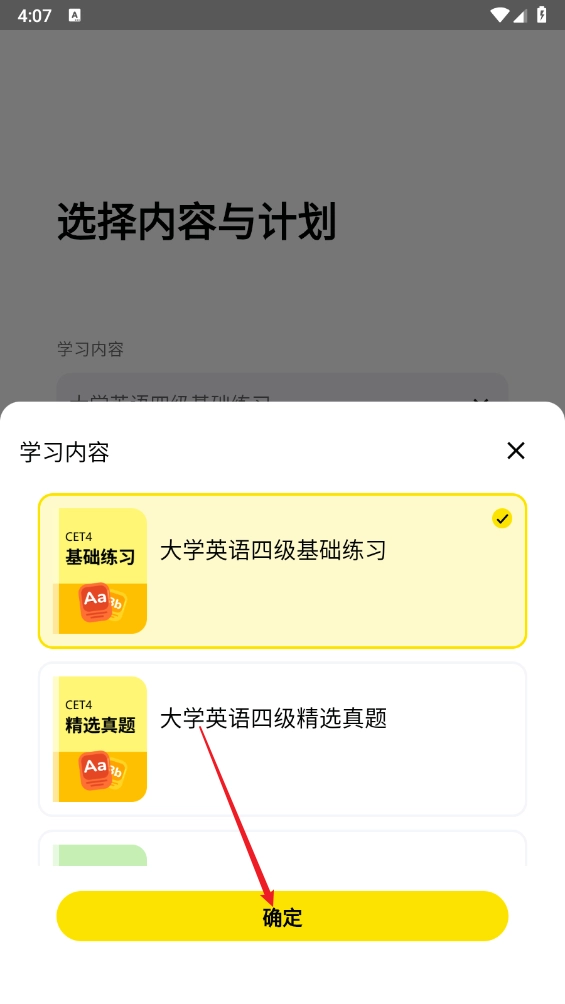 在主页能够查看计划的学完天数,点击“去完成”按钮即可。