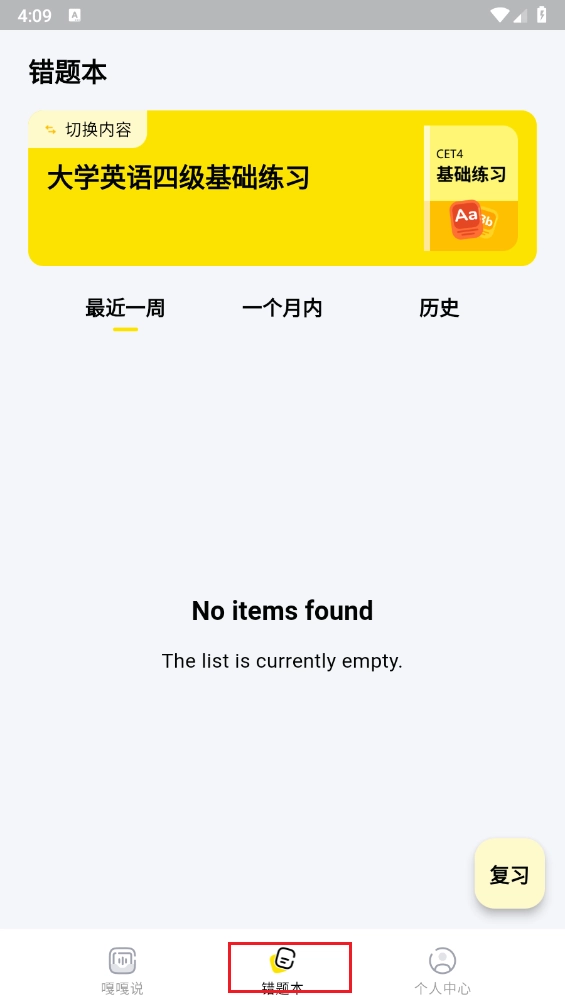 切换到错题本板块,就能随时查看近一周或一个月内的错题,之后依据自身情况安排复习就可以了。