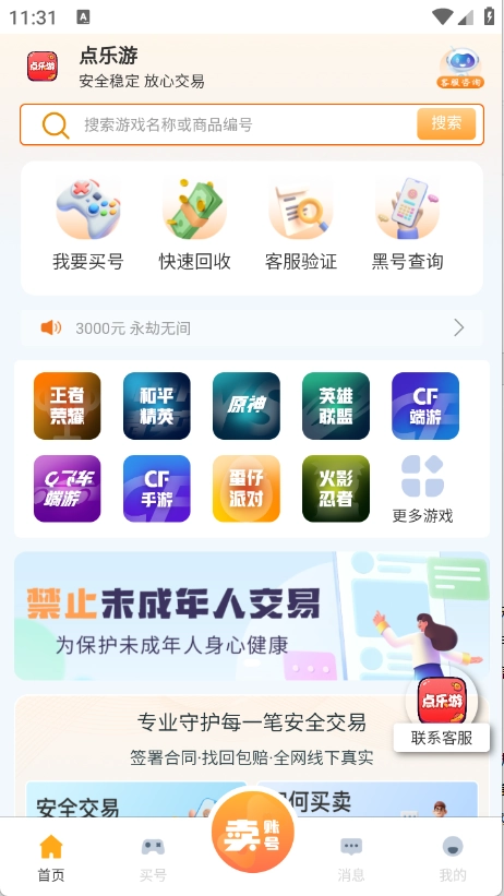 点乐游是一家专业的游戏账号交易平台,涵盖各类端游账号。平台上的每一款账号都经过严格审核后才允许发布,同时还能依据用户的喜好,智能且精准地推荐同类型账号。这里的账号性价比极高,能帮助玩家顺利买到心仪的账号。
