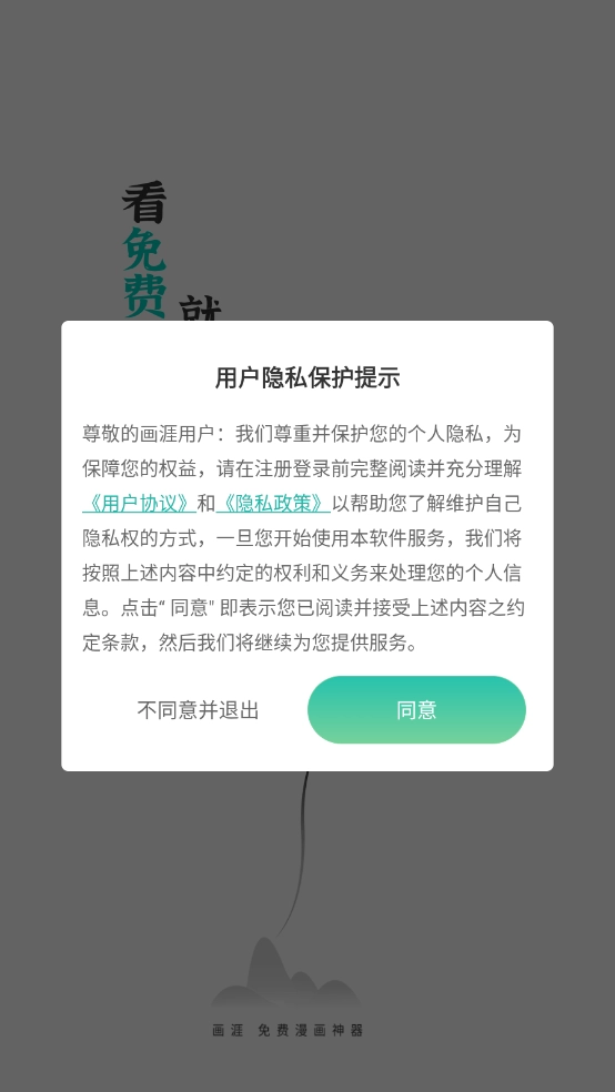 首先在3G游戏网把画涯安装到手机上,接着查看并同意相关的政策与协议。