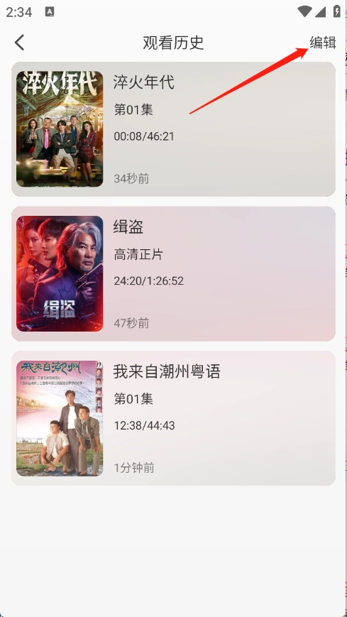 点击右上角的编辑。