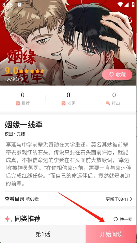 点开想看的漫画资源,点击“开始阅读”。