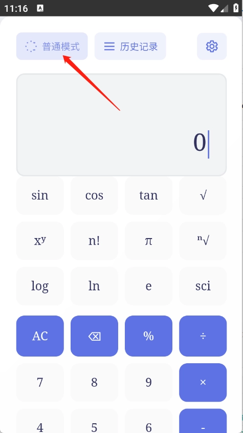 进入到首页选择普通模式或者科学模式。