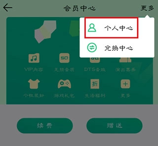 进入之后,点击右上角的“更多”,再点击“个人中心”。