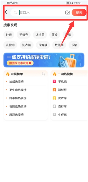 2、在顶部搜索框中,输入目标商品名称即可进行搜索。