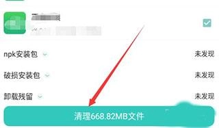 4、在安装包清理界面会自动扫描手机内的安装包,扫描完成后勾选应用安装,如下图。