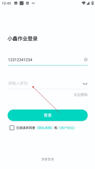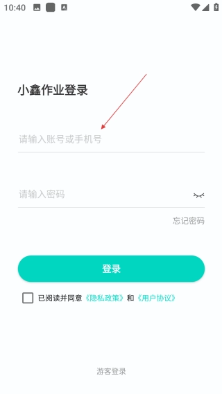 在小鑫作业的登录页面,输入【账号或者手机号】,为接下来的登录操作做好准备。