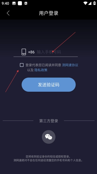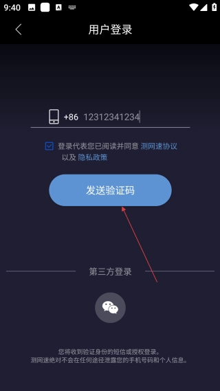 在输入手机号码并勾选相关协议后,点击【发送验证码】按钮获取验证码,就能继续进行登录操作。