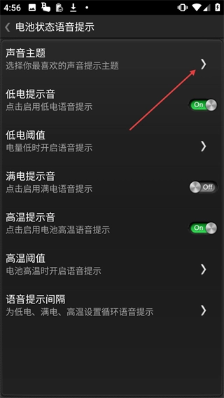 在语音提示设置页面点击【声音主题】选项,即可展开声音主题的选择列表。