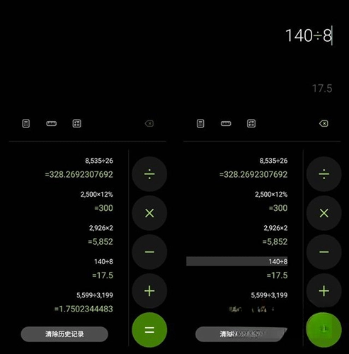 点击历史按钮,就能查看过往的计算记录。再次点击其中某条记录,它会直接出现在数字区域,方便你重新进行计算。