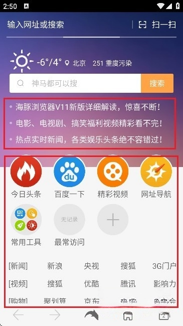 并安装海豚浏览器后,打开应用,界面如图所示。