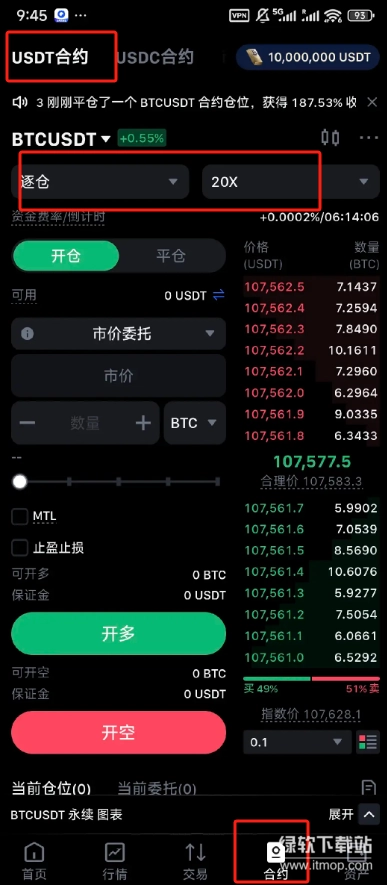 合约界面提供三个板块:usdt、usdc合约、币本位
