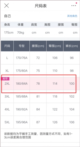 温馨提示:如您账号已设置多个尺码角色时,系统将会推荐您账号中默认角色的尺寸