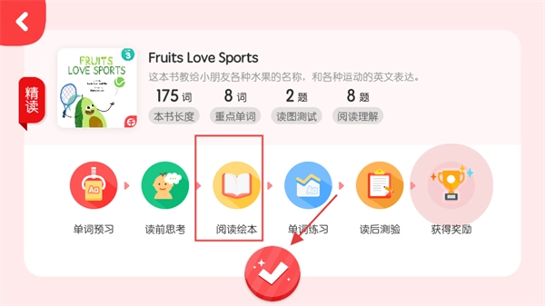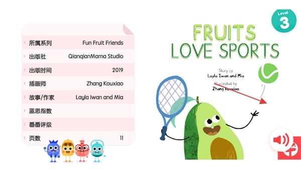 2、在今日推荐页面,选择要阅读的绘本,如FRUITSLOVESPORTS,进入绘本详情页。