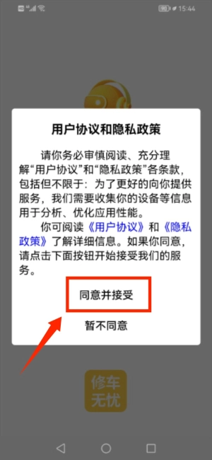 1. 初次启动应用时,需在用户协议弹窗处点击同意并接受。