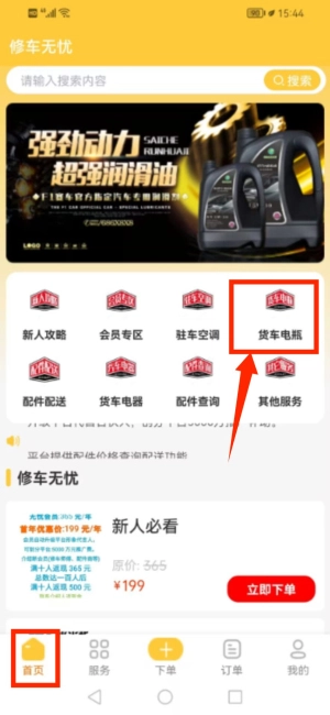 2. 在首页找到货车电瓶选项,点击后浏览与之相关的商品。