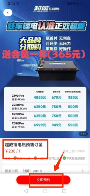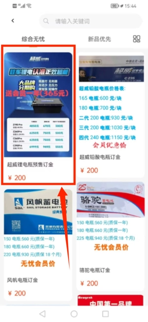 3、于商品列表里寻得超威锂电瓶预订项目。