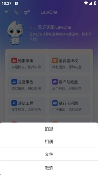 若要上传文件(像合同、证据这类),能够选择“拍摄”“相册”“文件”这几种方式,届时会触发存储权限申请。