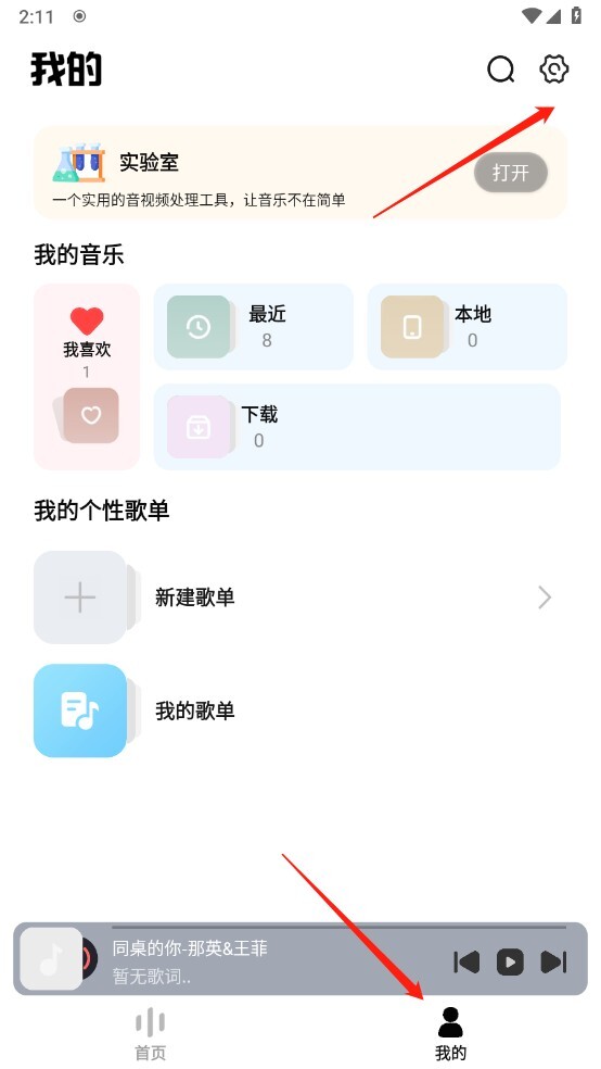 1. 开启音悦播放器2025最新版App,轻点“我的”,随后点击右上角的“设置”按键。