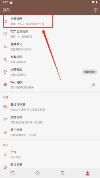 2、点击“书源管理”。