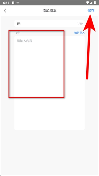 3、在下方区域,输入剧本内容,点击页面右上角的保存按钮。