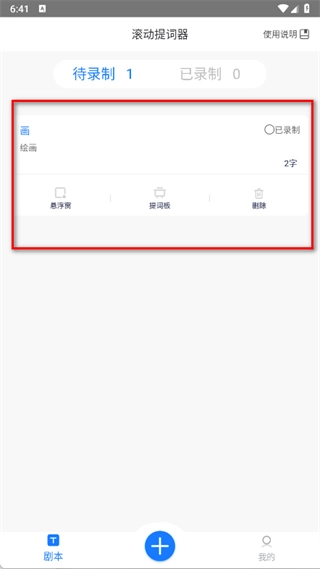 4、保存完成后,回到剧本列表页面,看到已添加的剧本,进行录制。
