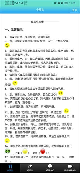 3、各种食品健康小贴士可以随时查看,可以借此学习食品和药品的安全知识;