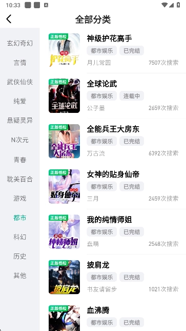 3、选择感兴趣的类型后可以获得大量的小说