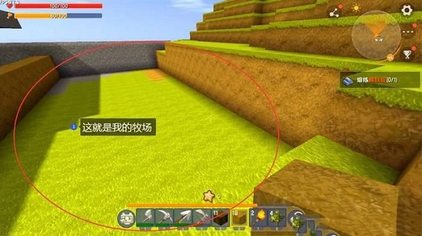 首先我们需要找到一处水源——因为在水源附近,农作物可以得到更好的滋养。接下来就在水源的两侧进行两种截然不同的处理方式:锄地与铲地。因为在《迷你世界》中,农作物与花树草也有着本质的区别:农作物只能种在用锄头锄过的地上;而类似树苗与鲜花这样的种植物,就只能被种在用铲子铲过的土坑里。