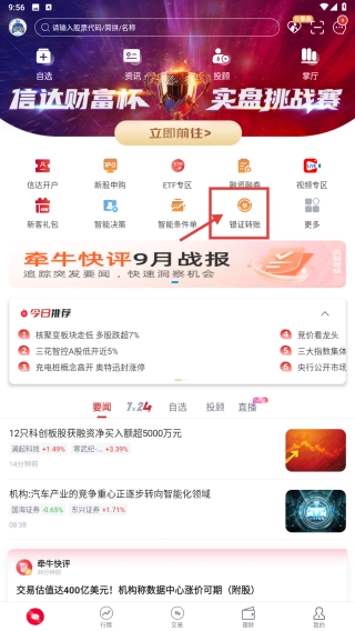 2、在首页页面,找到银证转账板块,点击进入相关功能页。