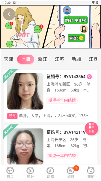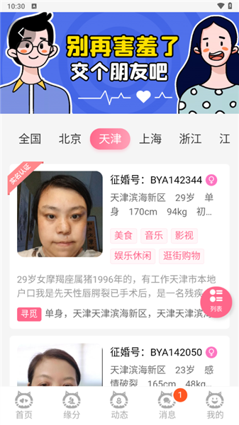 1、在软件首页,我们能够看到最新更新的征婚启事。