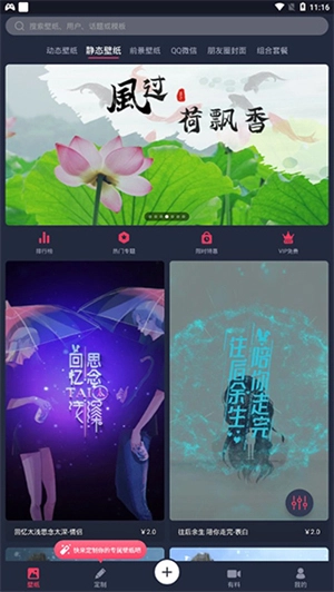 3、DIY编辑工具:提供静态与动态模板,特效、贴纸等素材,添加个性元素后一键生成定制壁纸。