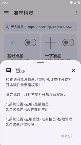 2. 系统会给出提示,告知应用需要开启悬浮窗功能。