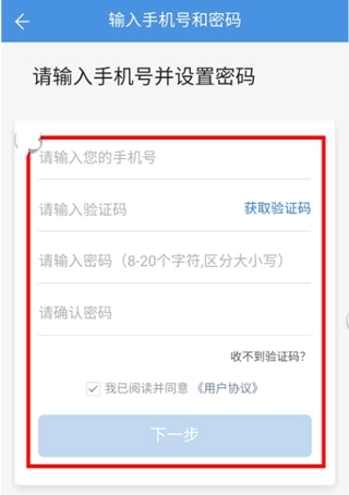 第五步:输入手机号码、验证码,设置密码;