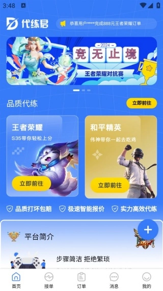 1. 平台向用户供应高质量的游戏代练服务,确保了代练服务的品质。