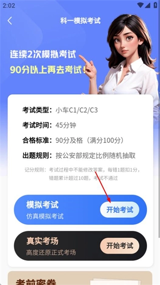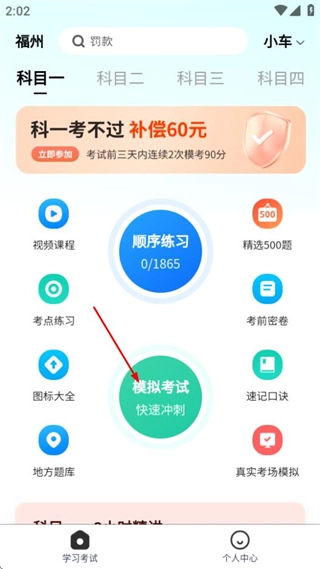 1. 开启驾照考试速通应用,点击“模拟考试”选项,就能进入科目一模拟考试页面。