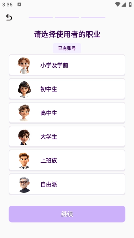 1. 开启傻瓜英语应用,然后点击对应自身的身份选项。