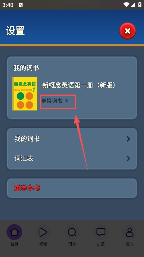 2、接着点击更换词书