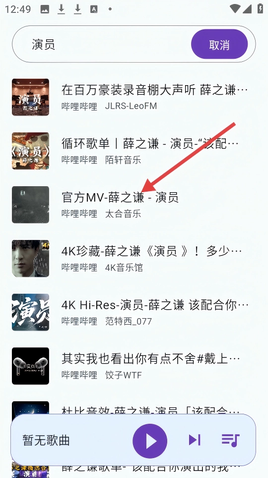 3、在搜索【演员】的结果中,找到【MV-薛之谦-演员】可进行后续操作。