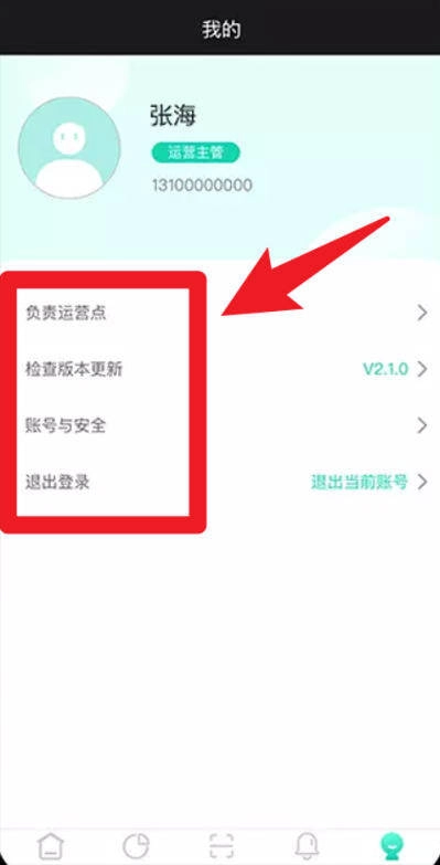 5、在我的页面中,具备运营点管理、版本更新以及退出登录等功能,用户能够依据自身需求,开展与之对应的账户及系统操作。