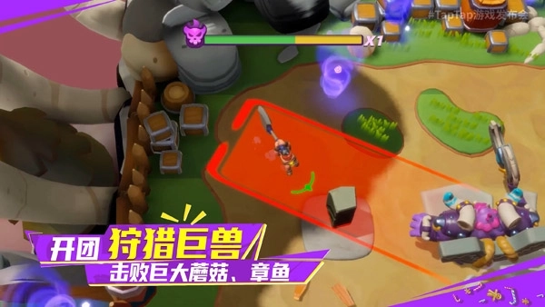 游戏延续了《野蛮人大作战》的经典3v3v3玩法和幽默搞怪的角色设计。每局只需6分钟,随时开战。多阵营混战,刺激无比。使用地图中的冰蘑菇、火蘑菇投掷对手,还能触发意想不到的效果。尽情吃喝,畅快砍杀,乐趣无穷超乎想象!