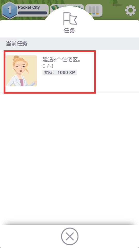 3、在任务界面里,查看当前任务(如建造8个住宅区),明确建设目标。
