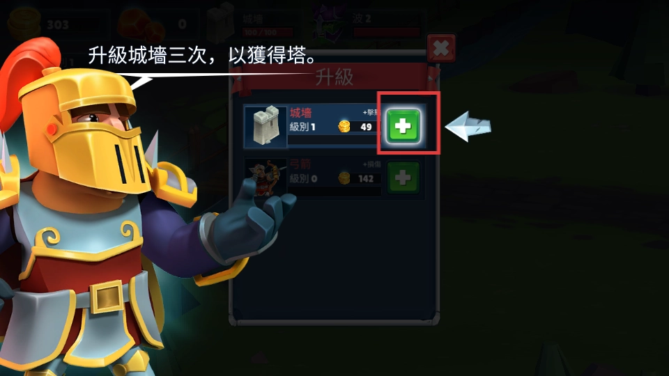 3、对城墙进行升级,从而增强防御能力。依照提示完成三次升级操作,即可获取塔,以此提升城池的防御实力。