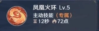 连续2次的范围攻击,造成180%+644的火焰伤害,会消耗被命中目标的凤火状态,火环对该目标伤害提升100%,命中目标减少技能冷却,最多减少2秒。
