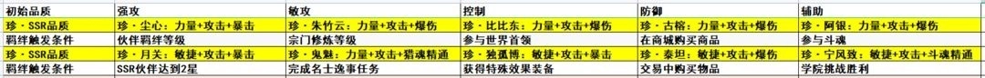 玩家在游戏初期可以自由强化魂卡,强化之后还能进行回退操作,回退时会全额返还所用的强化材料。如果强化后的魂卡不是你需要的,在获得了需要的魂卡之后可以选择回退,再对新获得的魂卡进行强化。下图展示了魂卡达到SSR品质时的各项属性以及触发羁绊所需的条件,这些属性包括四维属性、基础属性以及羁绊带来的额外属性。