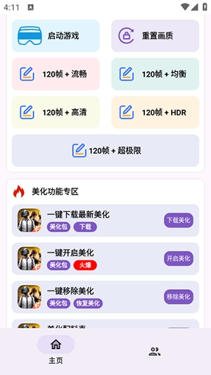 明帝至尊美化包手机版,是一款专门针对游戏玩家打造的画质优化及美化包管理软件。它借助Shizuku授权,能够一键解锁120帧高帧率画质,包括流畅、均衡、高清、HDR、超极限等多种模式。同时,该软件还具备全网热门的美化包以及一键应用功能。此软件秉持“极简操作、功能聚焦”的理念,部分功能需完成任务方可解锁,不过会提供详尽教程进行指导,帮助玩家轻松提升游戏的视觉体验,实现个性化装扮效果。