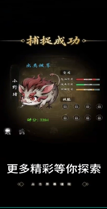 2、捕获成功,开始驯服灵兽,与你一起冒险,探索不同的秘境,自由的闯关。