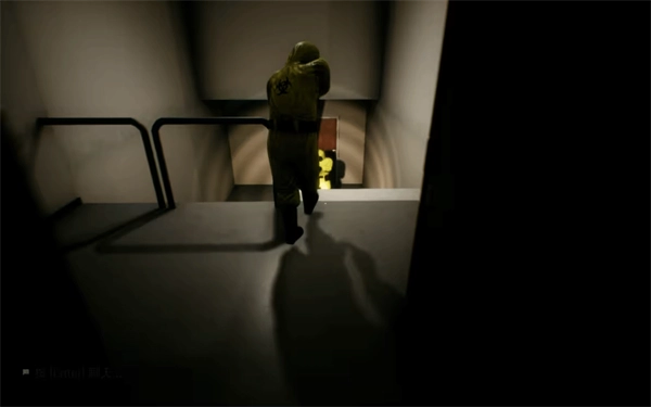 一直朝左前行,会遇到一处全然黑暗的区域,无需理会,持续按住shift键,直至看到左侧有一扇敞开的通道门。