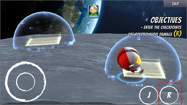 3、玩家点击“R”按钮可控制奥特曼翻滚至黄色区域;